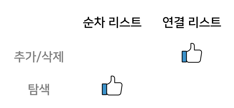 결과적으로 추가·삭제에서는 연결 리스트가, 탐색에서는 순차 리스트가 더 효율적인 자료구조라고 할 수 있겠습니다.